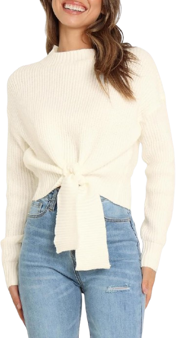 8. Cream Tie Front Sweater: