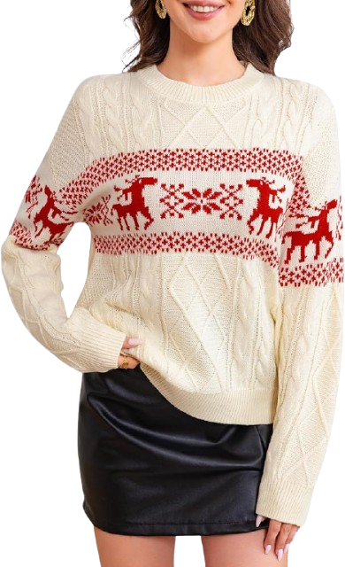 Nothing says Christmas like a classic knitted reindeer sweater. It’s warm, soft, and adorable and perfect for holiday photos, family gatherings, or a winter night out. This one has a traditional cozy look that never goes out of style.