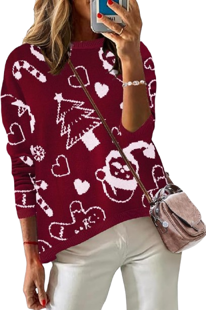This one gives vintage Christmas vibes: warm knit, holiday pattern, and super flattering. Anyone who loves classic winter fashion will love it. Throw it on with your favorite jeans and a pair of boots, and you have the most effortless holiday look.