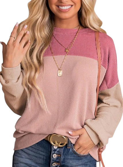 If you love soft colors, this pink color block sweater is a fantastic choice. It feels playful, trendy, and perfect for everyday outfits.